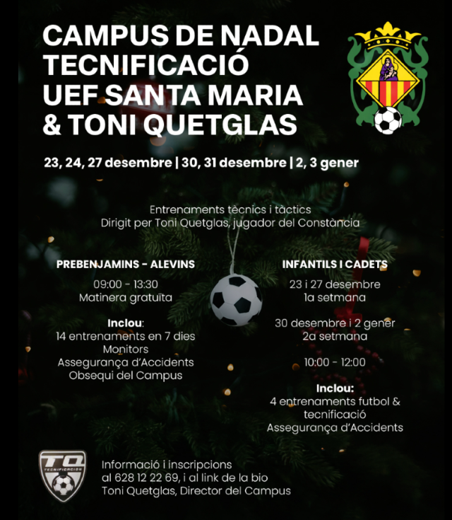 Apunta’t al Si vols seguir fent esport i millorant les teves habilitats futbolístiques durant les festes, no passis pena, encara hi ets a temps! Inscripcions al link: https://docs.google.com/…/1FAIpQLSdIWFGnSDjJsy…/viewform Per a més informació: 628 12 22 69