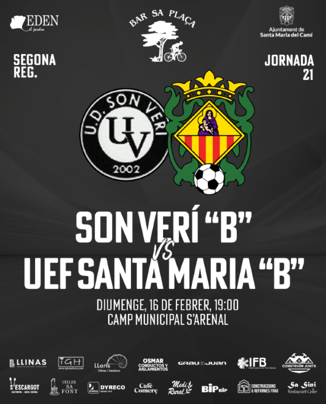 El nostre Amateur “B” visita el camp del Son Verí aquest diumenge. T’ho perdràs? Diumenge, 16 de febrer Hora: 19:00 Lloc: Camp Municipal s’Arenal