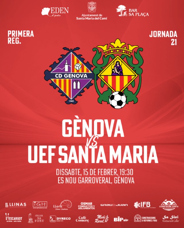 Després de l’empat amb el Collerense, el primer equip no es pot permetre fallar. Demà te un nou repte, a les 19:30, a Gènova. T’hi esperam! Dissabte, 15 de febrer Hora: 19:30 Lloc: Es Nou Garroveral, Gènova